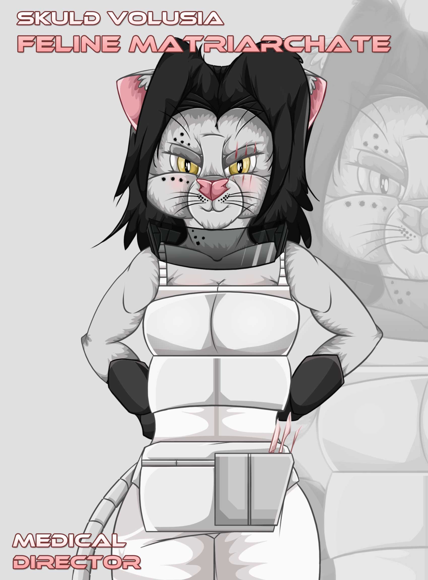 Skuld Volusia on Feliinimatriarkaatin Korkea Matriarkka. Hän on kuuluisa ja erittäin älykäs teknologi, joka on taitava biomekaanisessa suunnittelussa. Hän on myös taitava kemisti, joka on luonut monia lääkkeitä ja parannuskeinoja. Hänen merkittävin saavutuksensa on MUUPA-hyötydroonien sarja, jotka on muunnettu taistelukäyttöön. Vaikka hän viettää suurimman osan ajastaan laboratoriossaan ja toimistossaan, hän ei ole liian ylpeä osallistuakseen henkilökohtaisesti taistelukentälle saadakseen lisää ”näytteitä” tai rahallisia voittoja.